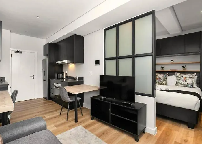 Apartamento Cosy Studio In The Heart Of Ciudad del Cabo, situado a una distancia de 350 metros de la Catedral de St. George, dispone de una terraza amueblada con cocinita. La Ribera de Victoria y Alfred está a un par de minutos del apartamento, y el Cape Quarter Lifestyle Village está a tan solo 6 minutos a pie.